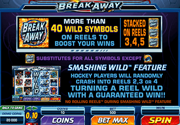 Хоккеисты, рефери, а также специальное спортивное снаряжение, связанное с хоккеем, выступают в качестве символов. Но особый интерес вызывают значки с дополнительными возможностями. Так, логотип Break Away напоминает джокер. Дикий символ появляется целыми полосами, в результате чего он очень часто заменяет остальные картинки.